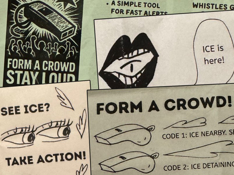 Outside of P.S. 1 last month, the group of rapid responders circled the area on bikes and on foot to ensure the agents had dispersed. They sent word inside the school once the coast was clear. Rapid responders also distributed whistles, which have become a popular grassroots tool in communities around the country for sounding the alarm about the presence of ICE agents. The whistles were packaged with printed guidelines on how to film ICE activity and report it to the rapid response channels.